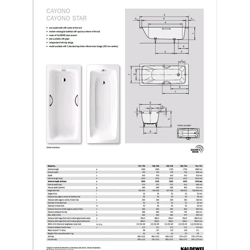 Данная ванна модели Cayono от немецкого производителя ванн Kaldewei отличается изысканным дизайном в отличии от обычных форм внутри ванны, а так же при производстве данной ванны применяется технология трехслойного обжига покрытия эмали, что препятствует проникновению отложений в поры эмали ванны, сохраняя таким образом Белоснежный внешний вид долгие годы.Ванны Kaldewei являются производителем № 1 на рынке ванн.