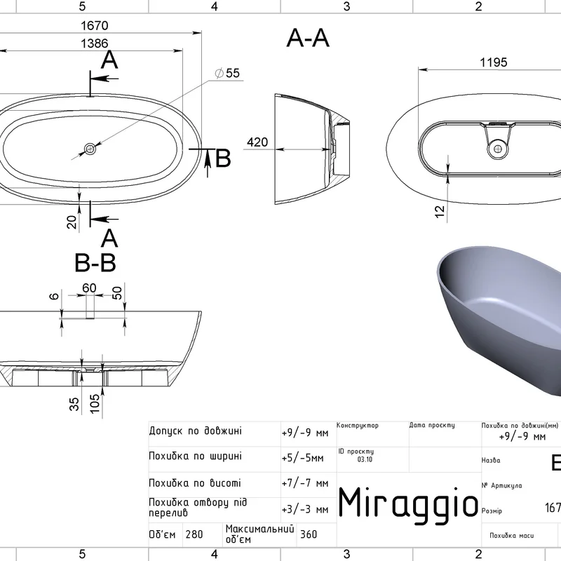 Miraggio пропонує великий вибір ванн із композитних матеріалів. Овальна;Чаша Ванна ESTELLA MIRAGGIO з матеріалу Miramarble - це досконале творіння за дизайном та функціональністю. Ванна ідеально доповнить проєкти сучасних фахівців оформлення інтер'єру. Поверхня ванни - Глянцева. Тип встановлення ванни - Окремостояча.