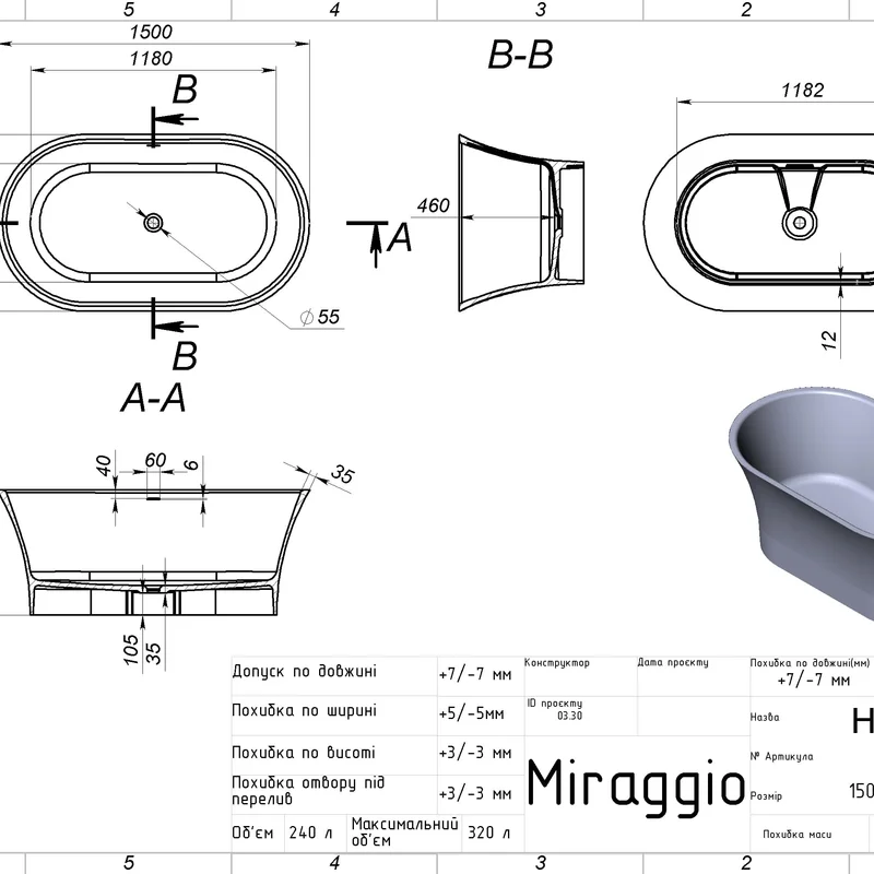 Miraggio пропонує великий вибір ванн із композитних матеріалів. Овальна;Чаша Ванна HELGA MIRASOFT MIRAGGIO з матеріалу Mirasoft Technology - це досконале творіння за дизайном та функціональністю. Ванна ідеально доповнить проєкти сучасних фахівців оформлення інтер'єру. Поверхня ванни - Матова. Тип встановлення ванни - Окремостояча.