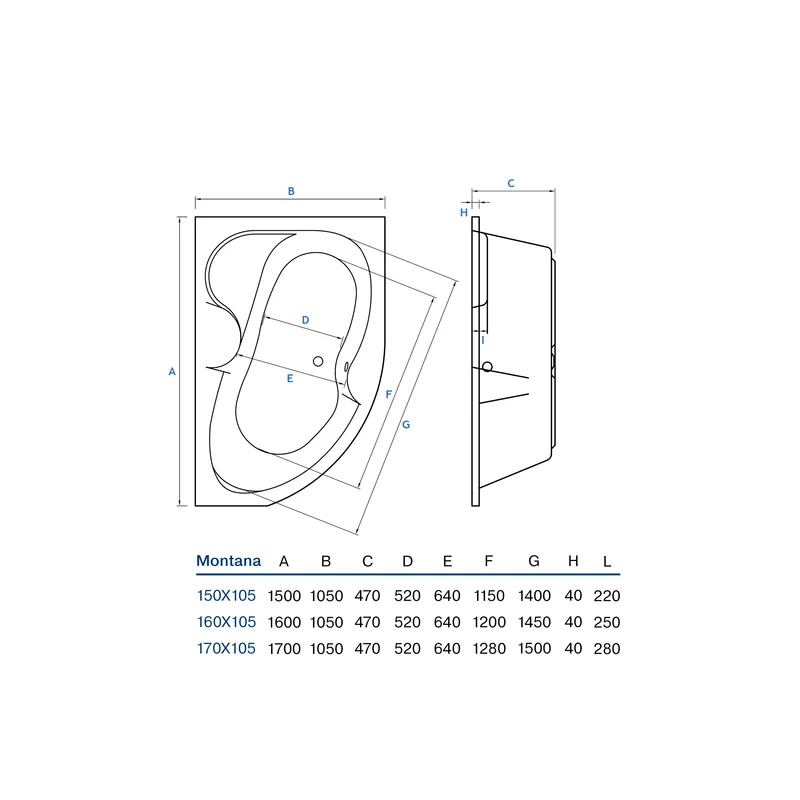 Ванна Montana обладает асимметричной формой и представлена в правостороннем и левостороннем вариантах. Montana позволяет наиболее практично использовать пространство в помещении. По своей конструкции она очень вместительна и при этом выглядит довольно малогабаритно. Отличительная черта ванны Montana – необычная форма внутреннего пространства. Красивые изгибы подчеркивают стиль ванной комнаты.