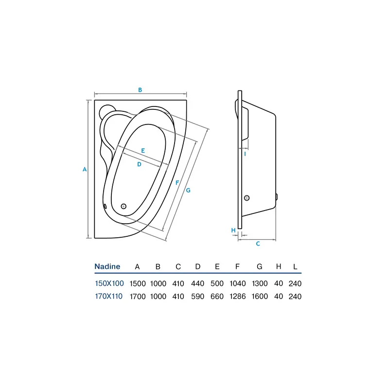 Простора асиметрична ванна Nadine має овальну форму внутрішнього простору. Продуманий до деталей дизайн стане яскравим елементом вашої ванної кімнати. Зручне сидіння та поличка для аксесуарів допоможуть вам максимально комфортно провести час у ванній кімнаті. Кутова ванна Nadine виготовляється в правосторонньому та лівосторонньому варіантах.