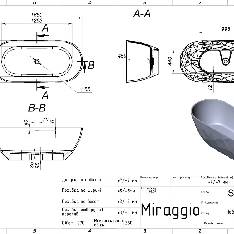 Ванна SAPFIRE MATT зі штучного каменю може бути пофарбована в будь-який колір за палітрою RAL. Зверніть увагу, забарвлюється тільки зовнішня поверхня виробу. Ванни з матеріалу MIRASOFT, фарбуванню не підлягають. Всі моделі ванн MIRAGGIO комплектуються сифонами фінського виробництва і мають гарантію від виробника 10 років.