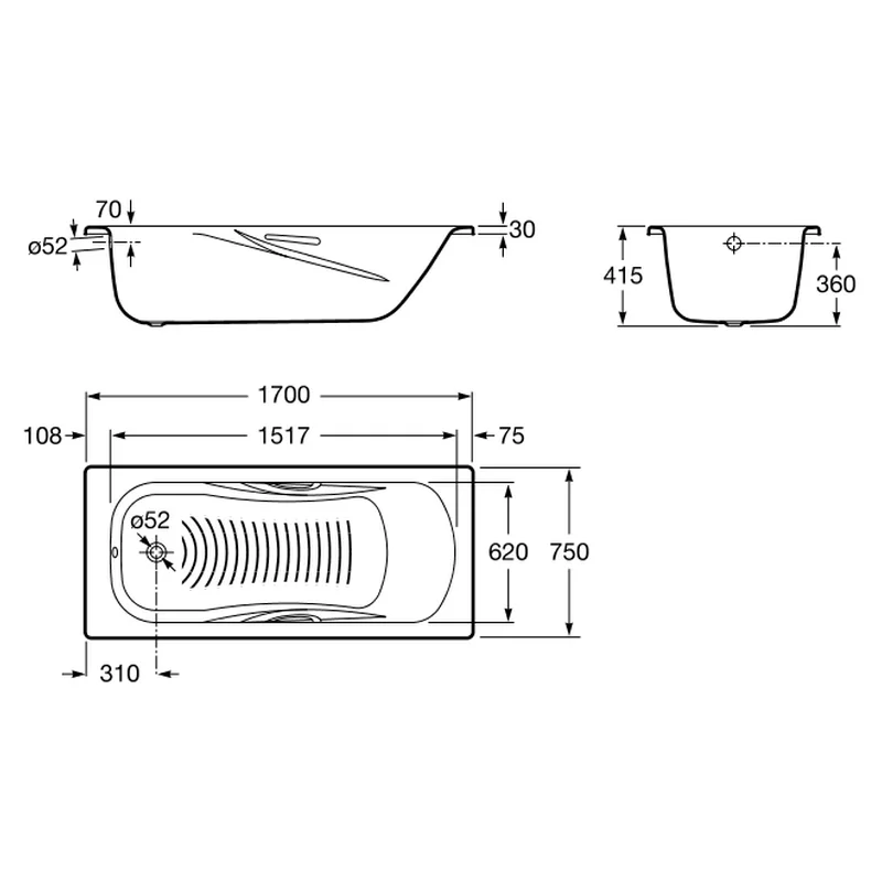 Сталева ванна Roca Princess-N 170х75 см виготовлена зі штампованої сталі товщиною 2,4 мм, має 3-шарове емалеве покриття. Завдяки цьому, ця ванна вирізняється високою якістю виготовлення та довговічністю емалі.