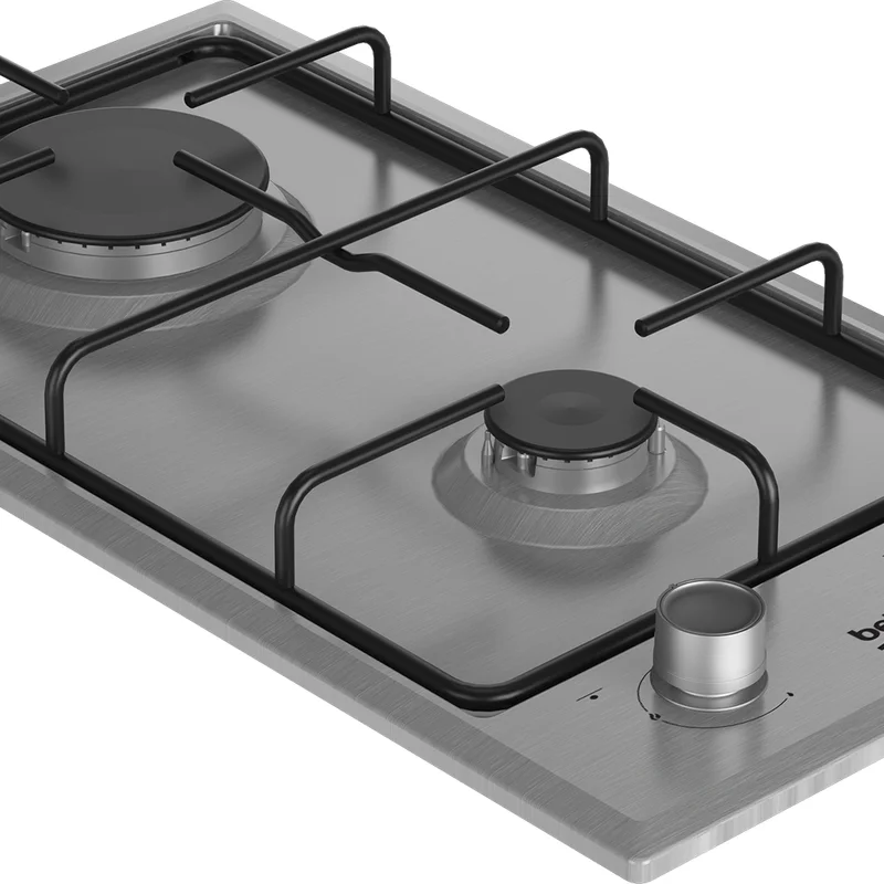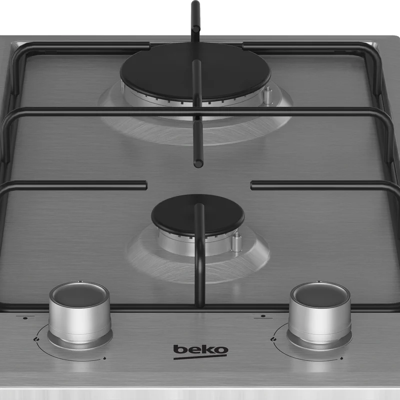Beko HDCG32220FX - цікава модель газової варильної поверхні від компанії Beko. Корпус поверхні виготовлений з нержавіючої сталі. Звичайно, такий корпус приємний зовні і завжди красиво виглядає на кухні у поєднанні з іншою кухонною технікою. Проте для хазяйки головнішим буде те, що такий корпус легше чистити і відмивати після великих свят. Ця модель розрахована тільки на дві газові конфорки, і відповідно має значно менші габарити. Але не переживайте, обидві конфорки досить потужні (одна на 1000 Вт, друга на 2900 Вт). На таких стандартних конфорках ви зможете приготувати усі основні блюда, зате розмістити таку поверхню ви зможете навіть в найменшій кухні. Розміри плити - ширина 30 см, глибина 51 см. І незважаючи на скромні розміри, обидві конфорки оснащені системою автоматичного электроподжига. Тобто, вам досить повернути ручку, і газ запалиться сам, і немає необхідності постійно купувати сірники.