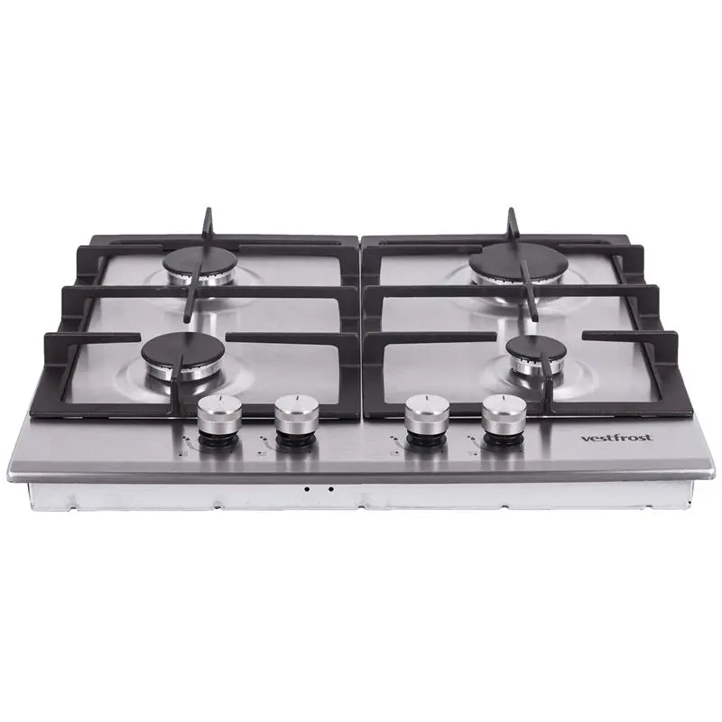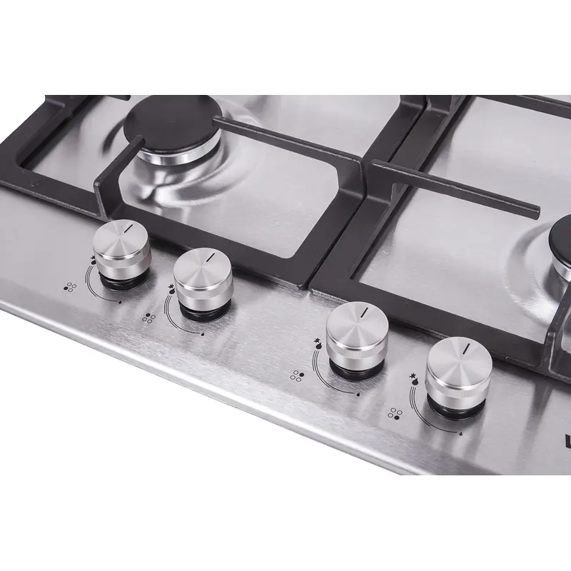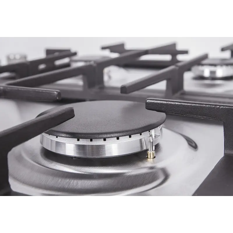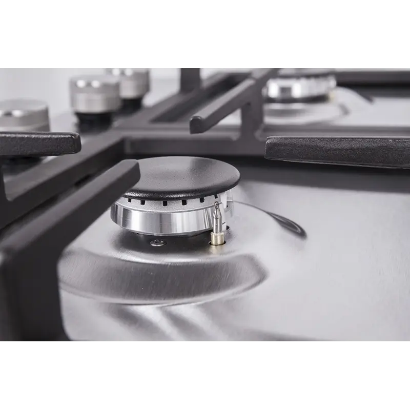 ФУНКЦІЯ АВТОРОЗПАЛЮВАННЯ Автозапалювання дозволяє підпалити газ безпечно і захищає користувачів від ймовірності отримання опіку. При застосуванні автозапалювання іскра подається від натискання на поворотній ручці на панелі управління. ЧАВУННЫ РЕШІТКИ Масивні і елегантні чавунні решітки надзвичайно надійні і стійкі навіть до високих температур. Вони створюють відчуття надійності, довговічності і зручності на вашій кухні. ПЕРЕДНЯ ПАНЕЛЬ КЕРУВАННЯ Практичні регулятори розташовані на передній частині поверхні; вони дозволяють точно встановити параметри приготування їжі і дуже легко чистяться. ГАЗ-КОНТРОЛЬ Наявність функції газ-контролю гарантує повну безпеку газового обладнання. Завдяки даній функції газ автоматично перекриється в разі випадкового загасання полум'я.