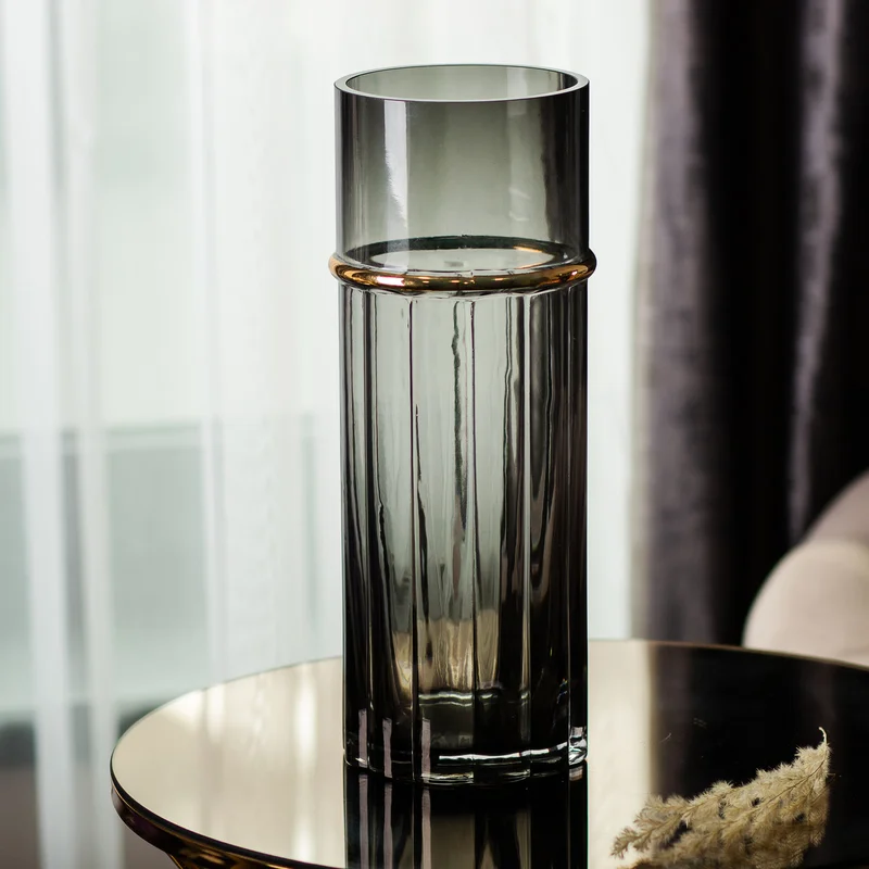 Ваза для квітів зі скла, декоративна, сіра, 30 см.