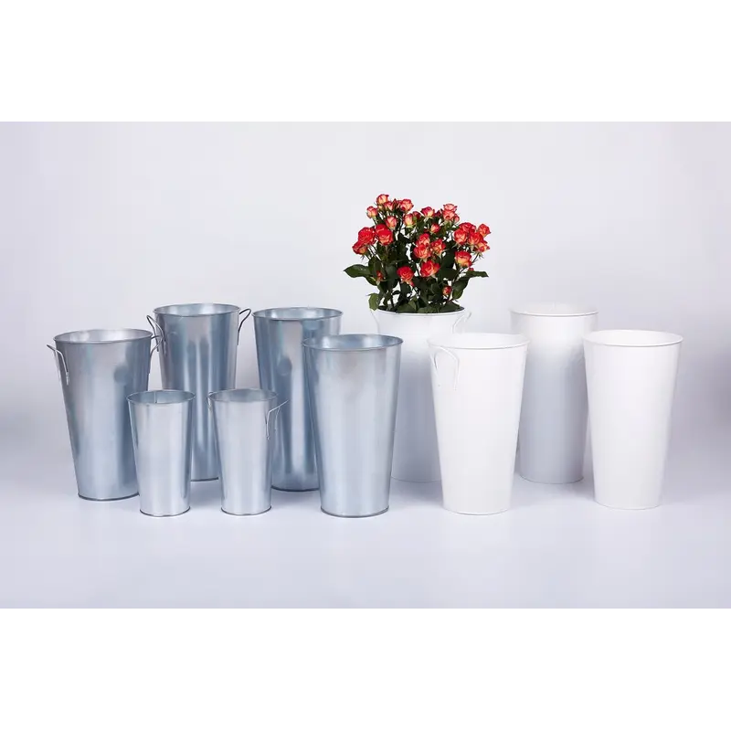 Металеві вазони і кашпо можна використовувати як для будь-яких букетів квітів, так і в якості горщика для посадки квітів. А також для створення флористичних композицій і різної творчості. Цю продукцію виконано в базових і акцентних кольорах, вона характеризується глянцевою поверхнею і різноманітністю розмірів і забарвлень. Вазони є як з ручками, так і без ручок, об'ємами 3,5л, 11л і 13л.