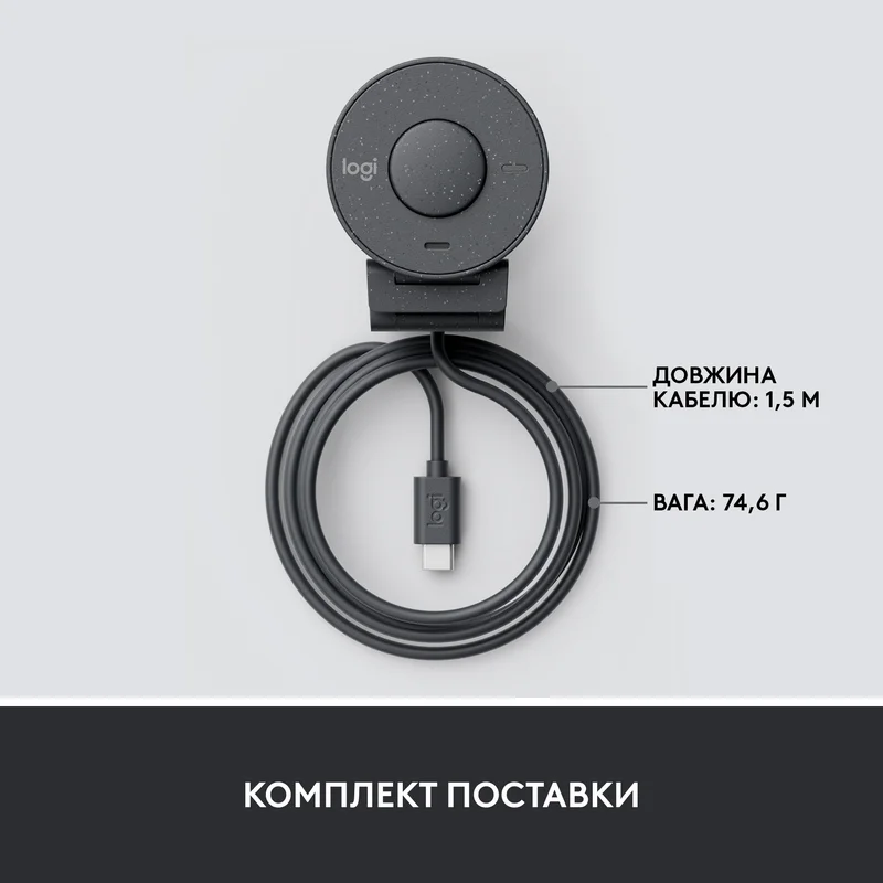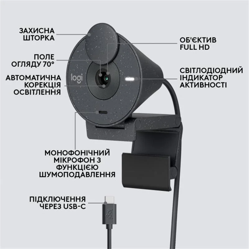 ОБЕРІТЬ СВІЙ СТИЛЬ. ОБЕРІТЬ НОВЕ ЖИТТЯ ДЛЯ ПЛАСТИКУ Більш ніж просто гарний зовнішній вигляд, Brio 300 свідомо розроблено з використанням мінімум 48% переробленого пластику, щоб підтримувати більш справедливий і кліматично сприятливий світ. Ми вибрали різноманітність переробленого пластику (PCR). Крім того, що цей пластик дає нове життя, це також надає Brio унікального, стильного вигляду. ВІДОБРАЖЕННЯ У ФОРМАТІ FULL HD Краща робота з високою роздільною здатністю та автоматичною корекцією світла. ЧУДОВЕ ЗОБРАЖЕННЯ ЗА БУДЬ-ЯКОГО ОСВІТЛЕННЯ RightLight 2 автоматично налаштовується, щоб компенсувати складні умови освітлення, щоб ви виглядали чітко під час відеодзвінків.