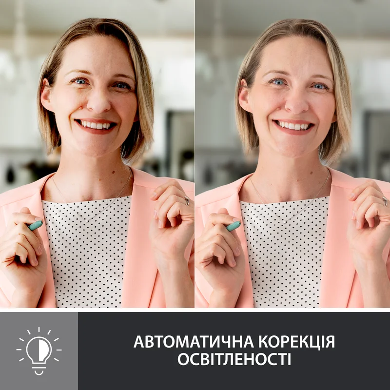Показуйте себе у вигідному світлі на будь-якій відеоконференції. Завдяки веб-камері Brio 500 ви завжди виглядатимете і звучатимете максимально природно на нарадах, що дозволить вам щиро насолоджуватися спілкуванням з іншими людьми. ПОКАЖІТЬ НАЙКРАЩУ ВЕРСІЮ СЕБЕ Відчуйте впевненість під час зустрічей у гібридному форматі. У цьому вам допоможе веб-камера, яка зробить ваше робоче місце більш затишним та унікальним. А максимальну чіткість та природність звуку та зображення під час відеоконференцій вам забезпечать мікрофони з функцією шумоподавлення та автоматична корекція освітленості. КРИСТАЛЬНА ЧІТКІСТЬ Беріть участь у ділових відеозустрічах та насолоджуйтесь почуттям впевненості та залученості завдяки веб-камері, яка дозволить вам показати себе у найвигіднішому світлі. КЕРУВАННЯ ГОЛОСОМ Будьте впевнені, що колеги зможуть почути кожне ваше слово, навіть якщо ви не використовуєте гарнітуру або навушники. Мікрофони з шумопоглинанням відфільтровують фонові звуки та підсилюють ваш голос. Таким чином, співрозмовники зможуть чітко чути саме ваш голос, а не шум. ПОКАЖІТЬ СВОЮ РОБОТУ Використовуйте інноваційний режим демонстрації: просто нахиліть камеру вниз і показуйте іншим свої ескізи, незавершені роботи та будь-які інші об’єкти на вашому столі. У комплект поставки входить кріплення, що оснащене накладкою з мікроприсосками. З його допомогою ви зможете зафіксувати веб-камеру на задній панелі монітора і легко регулювати її положення однією рукою. Завантажте безкоштовну програму Logi Tune, щоб увімкнути режим демонстрації. СТВОРЕНО ДЛЯ ВІДЕОКОНФЕРЕНЦІЙ Без праці приєднуйтесь до відеозустріч за допомогою вашої улюбленої програми. Brio 500 підтримує більшість платформ для проведення відеоконференцій та здійснення дзвінків, а також сертифікована їх розробниками. Серед цих платформ - Microsoft Teams, Google Meet та Zoom. МИТТОВА КОНФІДЕНЦІЙНІСТЬ Поверніть вбудовану захисну шторку, повністю заблокувавши доступ до камери. Тепер ніхто вас не зможе побачити. Створено для забезпечення конфіденційності. Спроектовано для зручного використання. СТІЙКИЙ РОЗВИТОК ДЛЯ LOGITECH Компанія Logitech зобов’язується піклуватися про довкілля. Ми активно працюємо у напрямку скорочення негативного впливу на екологічну обстановку та прискорення змін у суспільстві. ОБЛАСТУЙТЕ РОБОЧЕ МІСЦЕ ЗА СВОЄМУ ПОГЛЯДУ Створіть свій затишний куточок з робочим простором, що повністю відповідає вашому смаку та особистим уподобанням. Стильна веб-камера Brio 500 поповнила колекцію ретельно продуманих периферійних пристроїв Logitech і стала в один ряд з такими продуктами як бездротові навушники Zone Vibe 100, універсальна клавіатура K380 і миша M350 Pebble.