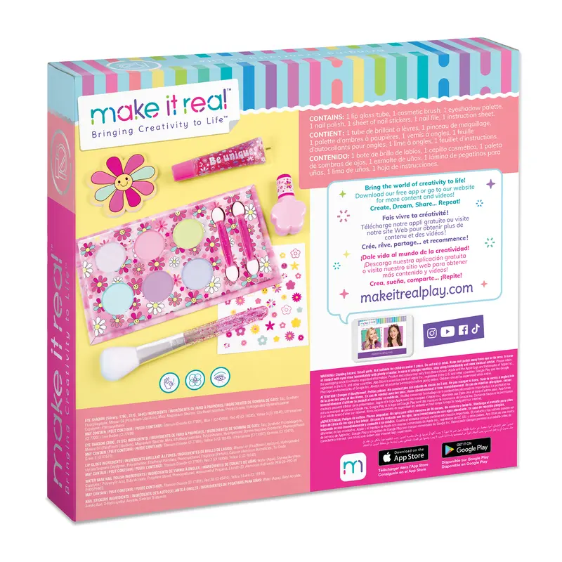 Make it Real Великий набір для магічного перетворення «Незабудка» дозволить кожній дівчинці відчути себе справжньою леді.У наборі є все для створення неповторного романтичного образу:Тіні для повік ніжних кольорівПензлі для макіяжуБлиск для губСвітлий лак для нігтівПилочка та наклейки для нігтів у вигляді квітівРозвивай фантазію, уяву та творчий потенціал разом з Make it Real. Експериментуй із кольором та дизайном. Будь-яка дівчинка зможе відчути себе візажистом у світі високої моди. Сучасне покоління - це модельєри, візажисти та стилісти. Вони здатні перевернути цей світ та наповнити його красою.Усередині є інструкція з порадами щодо нанесення макіяжу. Вся косметика із набору є абсолютно безпечною для здоров'я дитини.Рекомендовано використовувати дітям віком від 8-ми років.