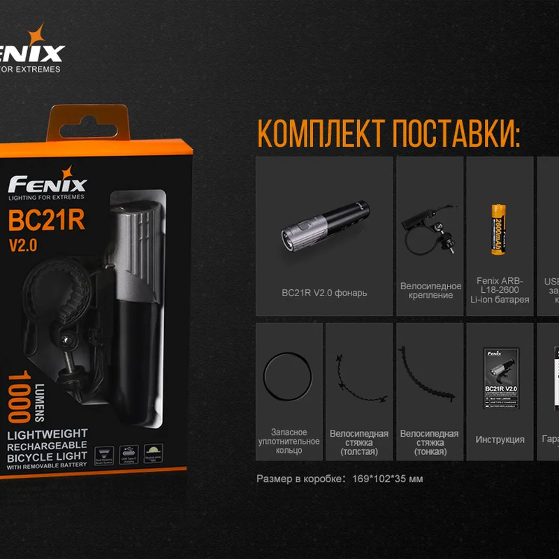 Fenix BC21R V2.0 – це нова велосипедна фара відомої китайської фірми. Ліхтар отримав поліпшення щодо попередньої моделі BC21R. Зокрема, збільшився показник світлового потоку приладу. Яскравість велофари досягає 1000 люмен проти 880 люмен попередньої версії. Також зменшився вага виробу. Якщо модель BC21R важила трохи більше 90 грам, то новий примірник важить 67 грам. Крім того, BC21R V2.0 може похвалитися цілісної металевою основою. А ще велофара підтримує зарядку через USB Type C. Нарешті, він заряджається протягом двох з половиною годин, у той час як у попередньої версії на це йшло чотири години.