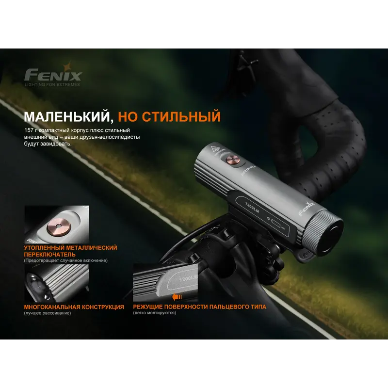 Модель Fenix BC21R V3.0 — це професійний велосипедний ліхтар для гірського та шосейного велоспорту, що підходить для інтенсивних заїздів на довгі дистанції. Яскравість світла досягає 1200 люменів і його можна побачити на дистанції 142 метри. Ліхтар перезаряджається через USB Type-C і живиться від батареї, що додається, ємністю 18650/2600 мАг.