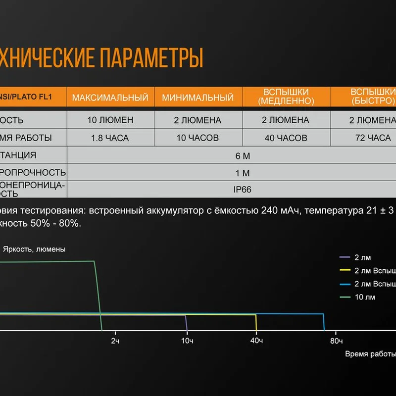 - максимальна яскравість — 10 люмен;