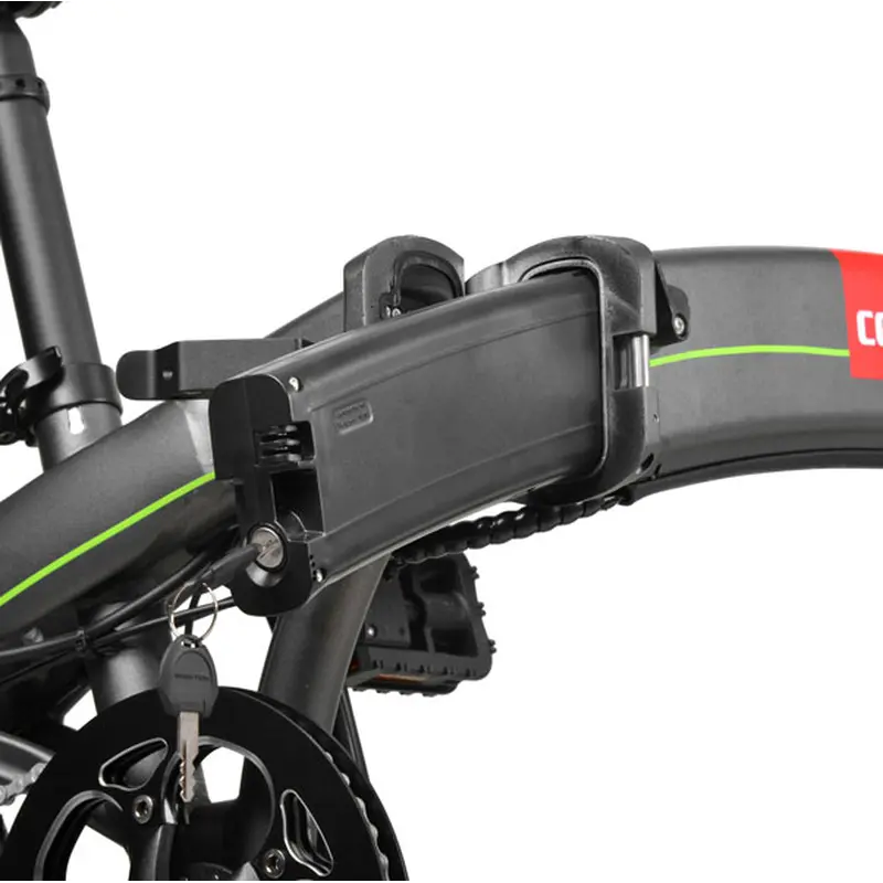 З повністю зарядженим акумулятором ви можете розраховувати на допомогу під час проїзду на велосипеді приблизно 60 км. Складаний велосипед розвиває максимальну швидкість 24,5 км/год і має 5 рівнів підтримки. Складаний велосипед має систему штовхання та старту. При натисканні кнопки мінус вона вмикається і знову вимикається, коли ви її відпускаєте.
