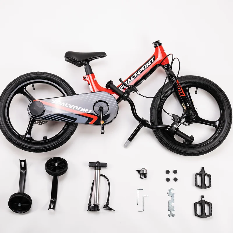 - В оригинальной комплектации: звонок, задняя фара, крылья, боковые колеса, педали, насос, подножка, инструменты для сборки велосипеда.