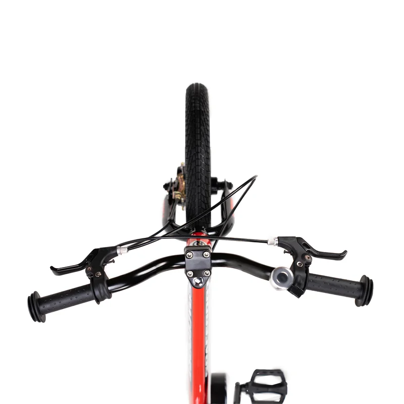 На байк установлена ригидная вилка. Она легкая и прочная, обеспечивает повышенную жесткость передней части велосипеда, а следовательно и высокий контроль в управлении. Основным преимуществом подобной вилки выступает ускоренное повышение уровня езды неумелым маленьким велосипедистом. Амортизационная вилка покроет большинство ошибок при езде, но жесткая - нет. Использование жесткой вилки обезопасит Вашего ребенка в будущем от ошибок, а пока Ваш ребенок обучается, за его безопасность будут отвечать боковые колеса, которые идут в комплекте.