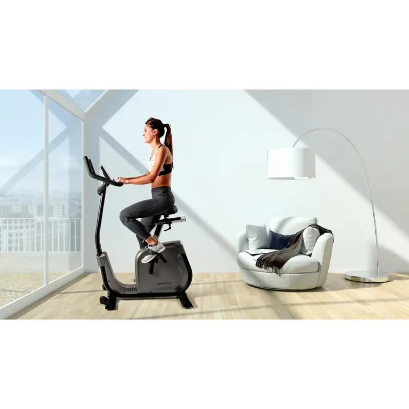 Велотренажер Toorx Upright Bike BRX 3000 (BRX-3000) із лінійки Light Commercial від італійського виробника Garlando S.p.A. призначений для комфортного кардіотренування як вдома, так і в невеликих фітнес клубах. Велоергометр із індукційною магнітною системою гальмування має 32 рівня навантаження, що регулюються за допомогою сучасного комп'ютера. 16-кілограмовий маховик створює відмінну плавність ходу, знижуючи навантаження на суглоби та мінімізуючи ризик отримання травми в процесі занять. Велотренажер розрахований на вагу до 160 кг і підійде для користувачів зростом до 210 см. Вбудований приймач для бездротового датчика вимірювання пульсу буде доречним під час тренування по одній із чотирьох пульсозалежних програм. Консоль тренажера має тримач для смартфона / планшета та підтримує Bluetooth для інтеграції з популярними програмами iConsole+ Training і Kinomap, які перетворять монотонне тренування в захоплюючий процес. Сидіння велотренажера регулюється по висоті та в горизонтальній площині для індивідуального налаштування, а транспортувальні ролики в передній частині тренажера дозволяють переміщати його по кімнаті.
