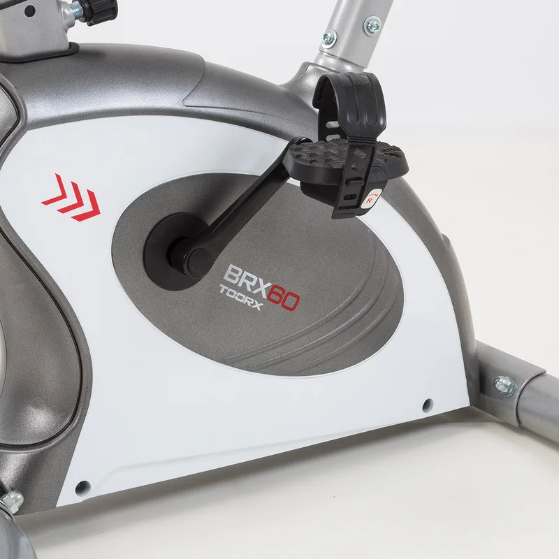 Велотренажер Toorx Upright Bike BRX 60 (BRX-60) від італійського виробника Garlando S.p.A. призначений для повноцінного кардіотренування в домашніх умовах. Тренажер має 8-рівневе ручне регулювання навантаження, а також простий у користуванні комп'ютер. 7-кілограмовий маховик створює достатню плавність ходу, знижуючи навантаження на суглоби та мінімізуючи ризик отримання травми в процесі занять. Велотренажер розрахований на вагу до 110 кг і підійде для користувачів зростом до 2 м. Вбудовані сенсорні датчики вимірювання пульсу будуть доречними під час тренування для контролю частоти серцевих скорочень. Сидіння велотренажера регулюється по висоті та в горизонтальній площині, а кермо має регулювання кута нахилу для індивідуального налаштування. Транспортувальні ролики в передній частині тренажера дозволяють переміщати його по кімнаті.