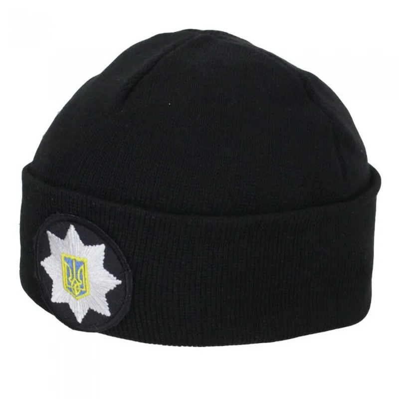 Вязаная шапка полиции черная на флисе Pancer Protection