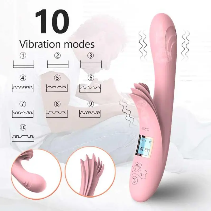 Дивовижний вібратор, обладнаний двома вібромоторами, один у стимуляторі клітора, який буде пестити його зовні, а інший у головці піниса так, щоб пульсації точно потрапили в точку G.Чіткий РК-дисплей підвищує комфорт використання, дає змогу зчитувати використовувану програму вібрації, рівень заряду акумулятора та температуру нагрівання вібратора.Вібратор має 10 режимів вибрации. Головка статевого члена нагрівається від 38 до 45 градусів Цельсія. Має аж 8 різних температур на вибір: 38 oC 39 oC 40 oC 41,2 oC — найпопулярніший режим нагрівання 42 oC 43 oC 44 oC 45 oCҐаджет має вбудований акумулятор, заряджання здійснюється за допомогою магнітного USB-кабелю, який входить до комплекту. Кабель можна під'єднати до будь-якого USB-порту.ТЕХНІЧНІ ХАРАКТЕРИСТИКИ: Матеріал: силікон, ABS Загальна довжина: приблизно 23,5 см Діаметр: до 3,5 см Функції: РК-дисплей, 10 програм вібрації, два вібромотори — у головці та стимуляторі, функція підігрівання головки статевого члена від 38 градусів Цельсія до 45 градусів Цельсія, Електроживлення: вбудований акумулятор, магнітний USB-кабель для заряджання в комплекті. Водонепроникність: Так, стандарт IPX6.Внимание! Щоб уникнути передчасного руйнування матеріалу та для тривалішого терміну експлуатації вібростимулятора, використовуйте лубриканти та мастила тільки на водяній основі!