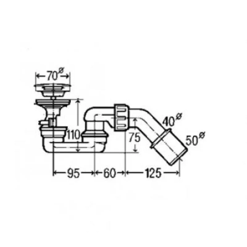 - Присоединительный размер (верх (резьба)-O x диаметр сифона x отвод): 70 x 1 1/2" x 40/50 мм