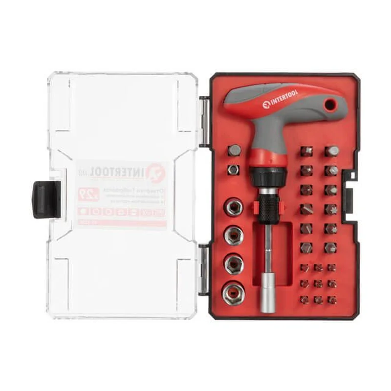 Викрутка Т-подібна з храповим механізмом і комплектом насадок 29 од. INTERTOOL VT-3330