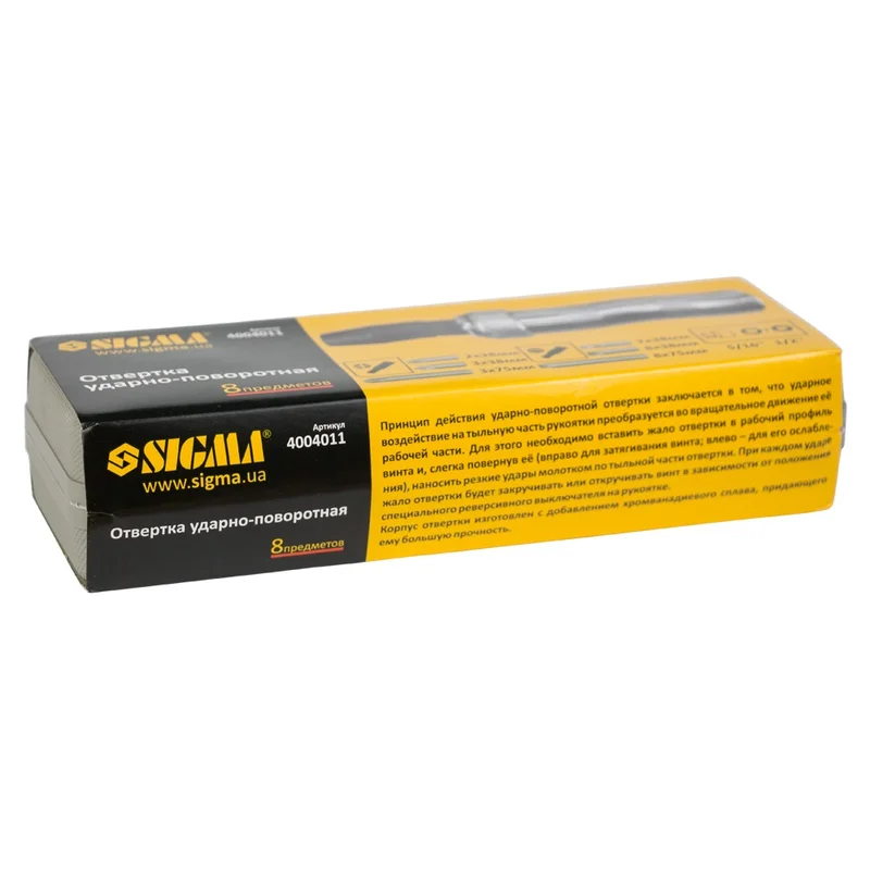 Викрутка ударно-поворотна з битами 8шт CRV (пластик кейс) SIGMA (4004011)