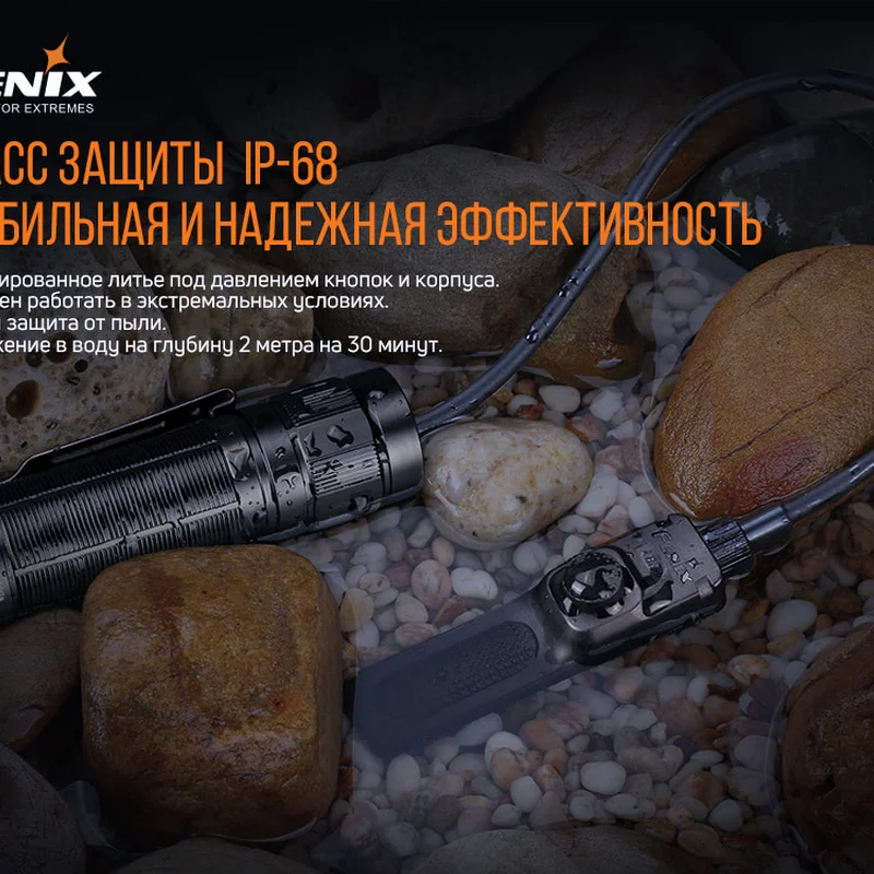 Тактична кнопка Fenix AER-04 має захист від вологи і пилу IP68. Це означає, що вона в стані занурюватися під воду і працювати там протягом 30 хвилин на глибині в кілька метрів. Аксесуар пристосований до експлуатації в умовах екстремальної навколишнього середовища. Кнопка може доповнити такі моделі, як Fenix TK30, TK22 V2.0, TK22 UE, HT18 та інші.
