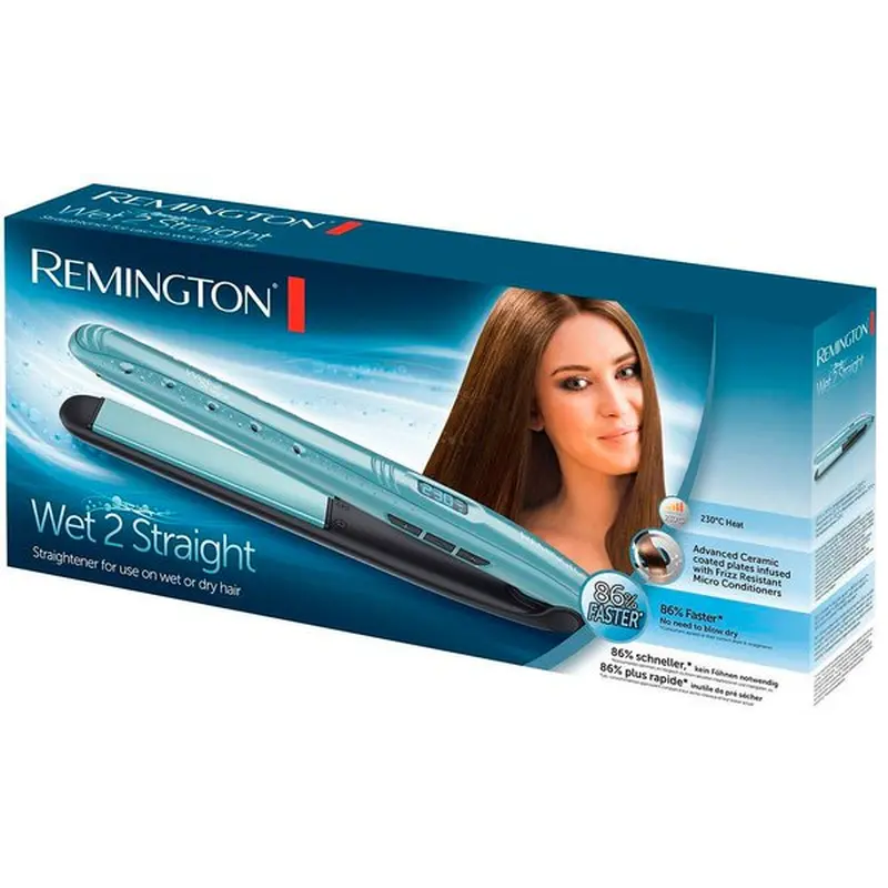 Випрямляч для волосся Remington S7300 стане обов’язковим приладом у вашій колекції для укладання волосся. Випрямляч допоможе оптимізувати догляд за волоссям, заощаджуючи дорогоцінний час і скорочуючи ваші зусилля на щоденний стайлінг. Розроблений спеціально для використання на вологе волосся, він дасть повну свободу в випрямленні волосся відразу після душа, без попередньої сушки волосся феном. Подвійний ефект застосування (сушка+випрямлення) гарантує до 86% більш швидкий результат догляду за волоссям.Відразу після того, як ви помили волосся, злегка просушіть їх рушником і почніть користуватися випрямлячем. Спеціальна конструкція випрямляча складається з отворів, які виводять зайву вологу під час стайлінгу від коренів до кінчиків волосся. Таким чином, ви одночасно сушите і выпрямляете волосся.Довгі плаваючі пластини 110мм забезпечують рівномірний тиск на всі ділянки пасма, забезпечуючи професійний результат стайлінгу, а швидкий розігрів пластин випрямляча гарантує економію часу. Приготуйтеся до головної ролі вашого дня з випрямлячем Remington Wet2Straight!Для досягнення оптимальних результатів на вологе волосся, встановіть високу температуру (в районі 200°C), в залежності від типу волосся. Функція турбо-нагрівання дає додатковий нагрів, коли це необхідно, що ідеально підходить для товстого або кучерявого волосся і допомагає довше зберегти укладку.Випрямляч Remington Wet2Straight оснащений пластинами, виконаними з удосконаленої кераміки з мікро кондиціонерами, які при нагріванні передаються структурі волосся, перешкоджаючи сплутуванню. Крім того, ваше укладання довше залишається гладким. Ця особливість також покращує структуру волосся, завдяки тому, що зберігає його природну вологу.