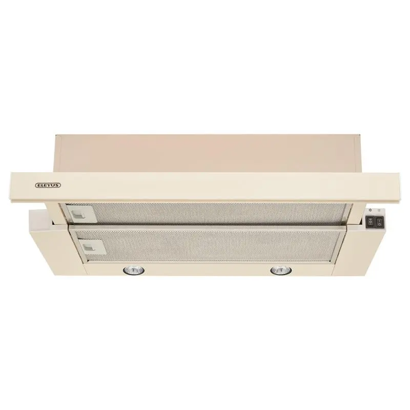 Компактність Телескопічна витяжка ELEYUS BREEZE 1000 вирізняється вдалим поєднанням потужної турбіни та компактного корпусу. Наші інженери продумали до деталей конструкцію витяжки задля мінімальних просторових витрат на вашій кухні, адже її вбудована частина складає лише 138 мм., що дозволяє вам з легкістю вмонтувати її навість у стандарті модульні системи. Продуктивність Чисте та свіже повітря гарантоване, оскільки ELEYUS BREEZE 1000 оснащена потужною турбіною з продуктивністю роботи 1000 м3/год. Інтенсивність втягування ви зможете регулювати самостійно, оскільки доступними є дві швидкості, а характерною особливістю телескопічних витяжок є наявність висувної панелі, яка збільшує площу забору повітря. Задля ефективного використання витяжки рекомендуємо вмонтовувати її у приміщеннях площею до 23 м2, а у випадку труднощів з під’єднанням до вентиляції використовуйте витяжку в режимі рециркуляції з двома вугільними фільтрами ELEYUS FW-Е14. Зручність у повсякденному використанні Надійне управління та освітлення додає комфорту до щоденного використання витяжки. Механічні клавіші управління дозволять вмикати та вимикати витяжку та освітлення, а також регулювати швидкість втягування повітря. Окрім клавіш, вмикати та вимикати витяжку можливо за допомогою телескопічної панелі. Для вашої зручності у ELEYUS BREEZE 1000 ми використали дві галогенових лампи, які вирізняються широкою площею освітлення. 5 років гарантії ELEYUS – український виробник, що впевнений у якості власної продукції тому забезпечує покупців гарантією 5 років на вбудовану техніку. Задля зручності користувачів працює широка мережа сервісних центрів та відділ сервісу компанії, що завжди готовий допомогти!