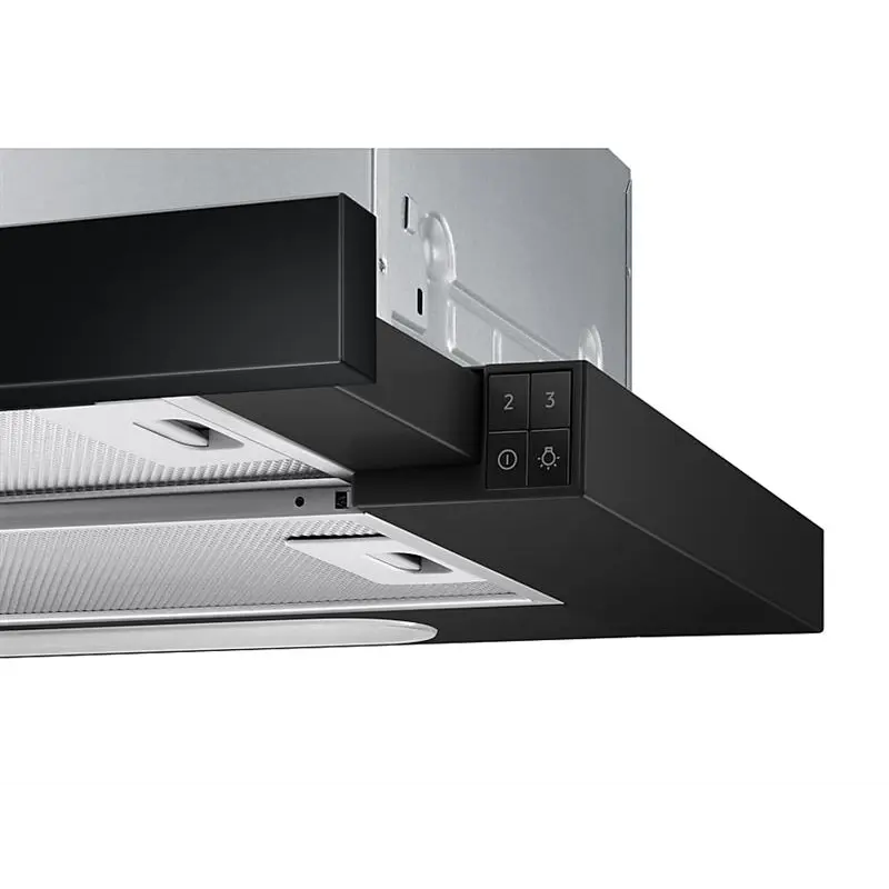 Алюмінієвий фільтр, що миється Довговічний і простий в обслуговуванні алюмінієвий фільтр захищає витяжний вентилятор і продовжує термін служби двигуна. Він затримує масло і пил, щоб вони не потрапляли в двигун або не перешкоджали повітряному потоку. Його потрібно очищати кожні 3-4 тижні, що не становить труднощів, оскільки він миється і досить компактний, щоб поміститися в посудомийній машині. 3-швидкісна витяжка 3-швидкісний вентилятор з достатньою потужністю двигуна забезпечує необхідний витяжний ефект, ефективно видаляючи пари і запахи.