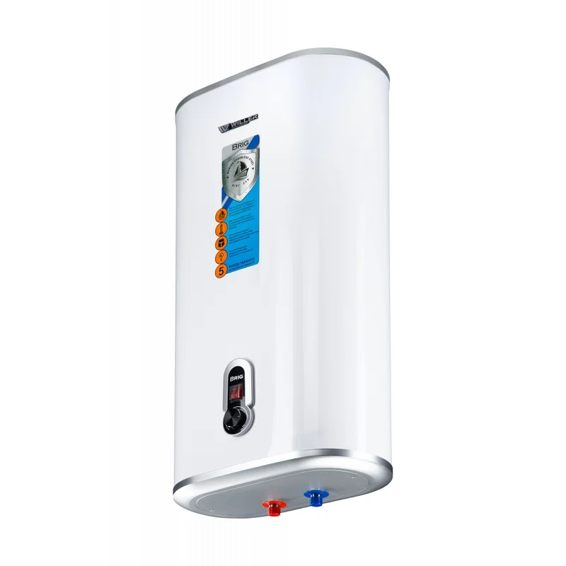 Willer IV50DR Brig - плоский електричний водонагрівач з внутрішнім баком з нержавіючої сталі AISI316 (відрізняється більш високою антикорозійною стійкістю в порівнянні з поширеною AISI304). Мінімальна глибина виробу (260-295мм з урахуванням монтажних планок) дозволить встановити бойлер навіть в обмежених простором умовах. У бойлері Willer IV50DR Brig встановлені два сухих нагрівальних елемента потужністю 1000 Вт кожен. Нагрівальні елементи розташовані в спеціальних захисних кожухах (фланці) і безпосередньо не контактують з водою, що значно збільшує їх довговічність і економічність. Нержавіюча сталь AISI316 - це стійкий до процесу корозії сплав, який містить не менше 17% хрому і з низьким вмістом вуглецю. Високий вміст хрому в сплаві забезпечує високу стійкість до процесу корозії. За своїм складом нержавіюча сталь AISI316 нагадує більш поширену AISI304, збагачену молібденом. Молібден - один з небагатьох легуючих елементів, здатних одночасно підвищити міцність, в’язкі властивості сталі, і корозійну стійкість.