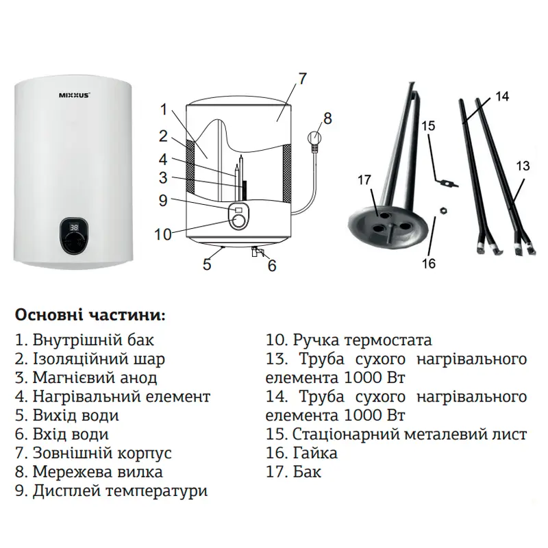 Водонагреватель "Узкий" Mixxus EWH-02080 Slim Dry накопитель. 80 л, сухой тен 2 kW (WH0013)