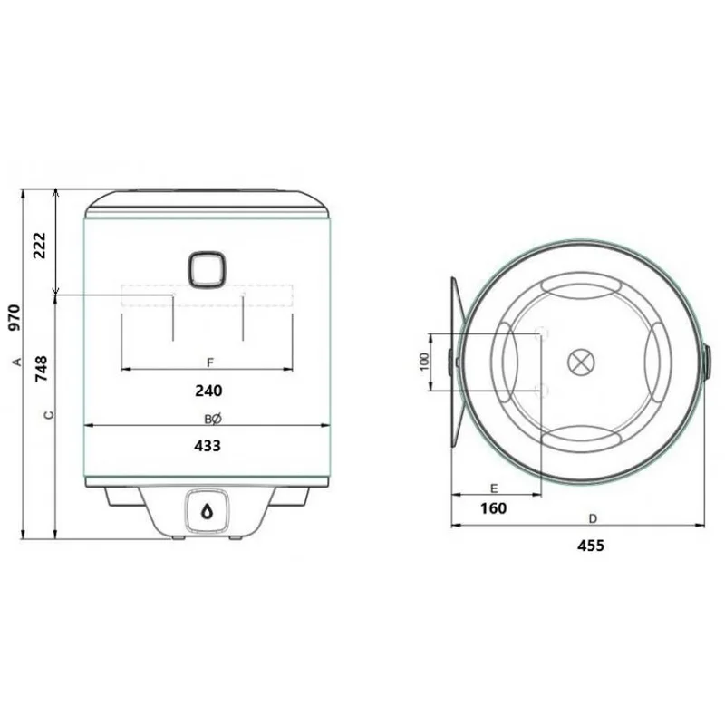 Завдяки компактним розмірам 970x433x455 мм і вазі 22,1 кг, цей бойлер встановлюється вертикально на стіну, що робить його ідеальним для будь-якого приміщення. Об’єм 94,1 літра і мідний ТЕН потужністю 1500 Вт дозволяють нагріти воду до 65 °C всього за 219,1 хвилини, а якісна теплоізоляція забезпечує зниження втрат тепла та енергоспоживання.