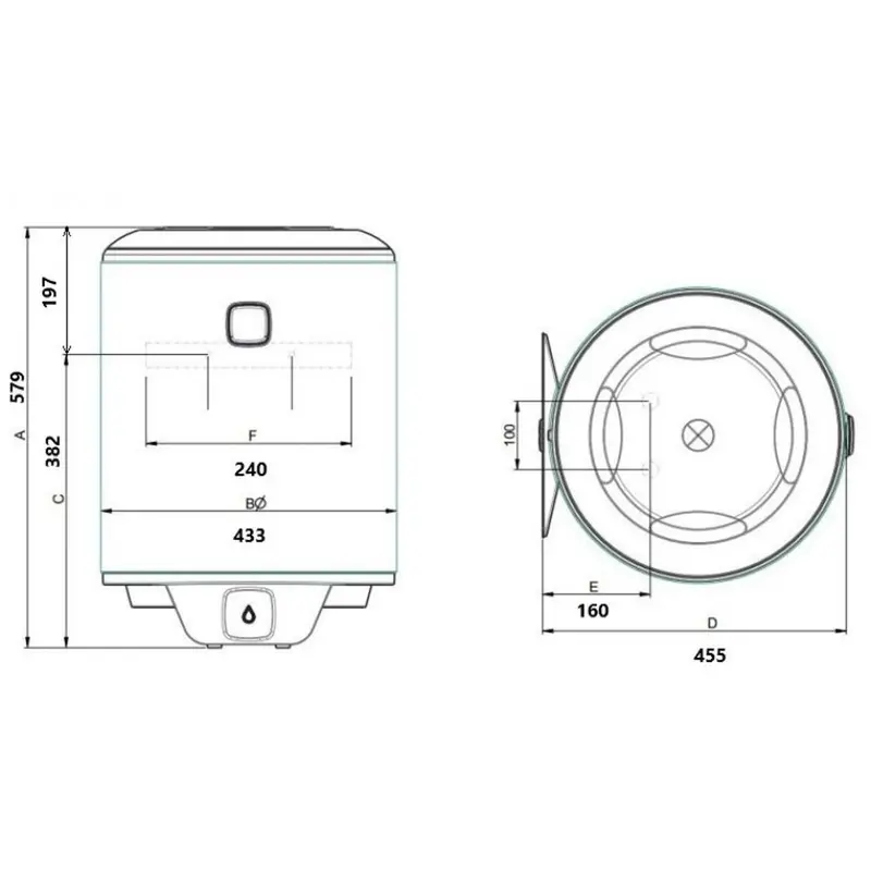 Бойлер об'ємом 46,7 літра призначений для вертикального монтажу на стіну і є чудовим варіантом для сім'ї з двох осіб. Його габарити складають 579x433x455 мм, а вага — 13,9 кг. Нагрівальний елемент потужністю 2000 Вт нагріває воду до 65 °C за 81,5 хвилини. Ефективна теплоізоляція знизити теплотрати та зменшити споживання електроенергії.