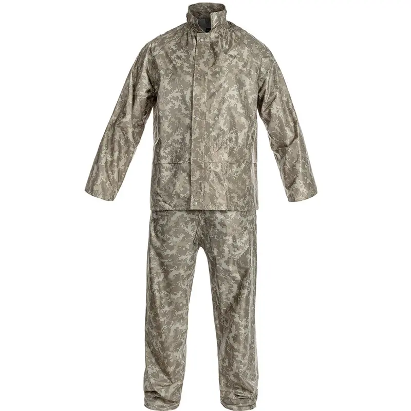 Легкий и прочный плащ-комплект из двух частей в камуфляже AT-Digital, состоящий из штанов и куртки с капюшоном, спрятанным в воротник. Идеально подходит как внешний защитный слой от неблагоприятных погодных условий. Набор изготовлен из полиэстера с ПВХ покрытием. Куртка с капюшоном застегивается на молнию, которая закрепляется клапаном на кнопках, имеет 2 больших кармана и вентиляционные отверстия. Брюки с эластичным поясом имеют два открытых кармана на бедрах, а ширина штанин регулируется кнопками. Шнурок на уровне талии предотвращает проникновение ветра под куртку. Все это можно легко сложить и упаковать в обложку, которая прилагается к набору. Технические характеристики Камуфляж: AT-Digital Материал: 100% полиэстер (покрытие ПВХ) Водонепроницаемость: 3000 мм Вес: 200 г