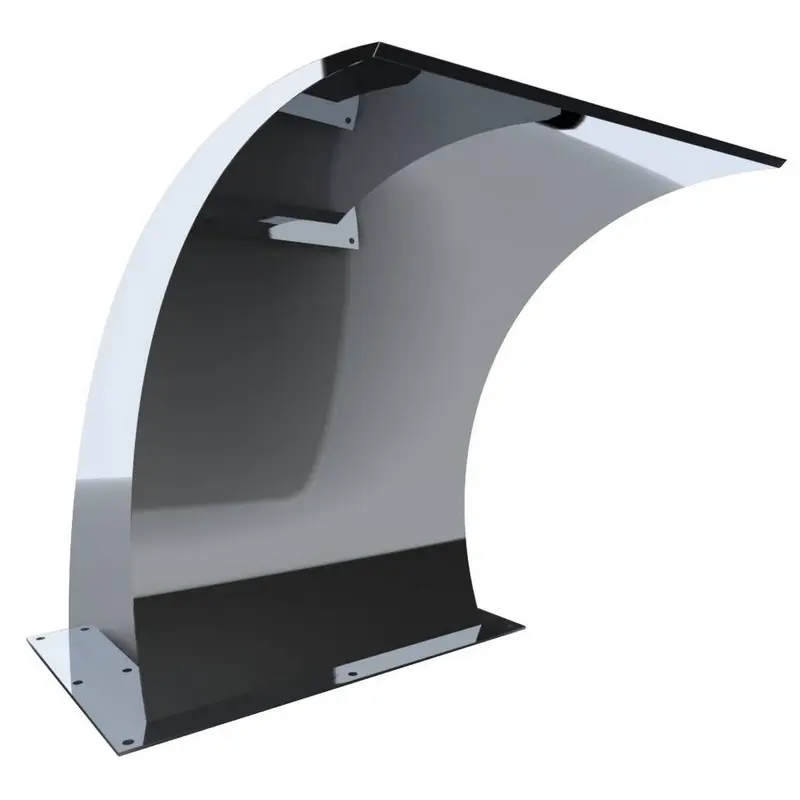 Бортовий водоспад Aquaviva у формі Хвилі для басейнів, купелів та СПА. Виготовлений із нержавіючої полірованої сталі AISI 316 високої якості. Матеріал виготовлення має відмінні антикорозійні властивості та високу стійкість до впливу ультрафіолету та хімічних реагентів. Призначений для розміщення біля борту басейну. Виконує декоративні, масажні та циркулюючі функції. Анкери для встановлення на борт у комплекті.