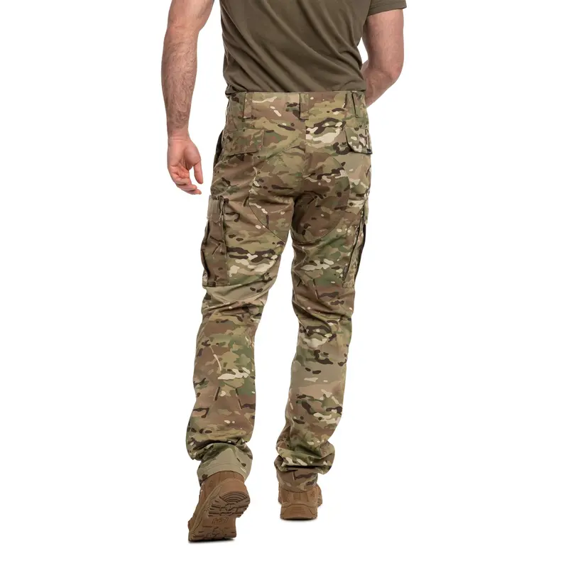 Штаны BDU (Battle Dress Uniform) в камуфляже MultiCam, оснащены 7 карманами. Тщательно продуманные, функциональные, с большим вниманием к деталям. Обеспечивают исключительную прочность в любых условиях. Классический крой BDU, дополненный современными решениями — это боевые брюки, которые идеально подходят как тактические, для активного отдыха на природе, так и для повседневной носки в городе. Изготовлены из материала Rip-Stop, состоящего из 65% полиэстера и 35% хлопка, который отличается высокой устойчивостью к истиранию и разрывам. Кроме того, ткань имеет специальную пропитку, повышающую устойчивость к загрязнениям. Брюки оснащены семью карманами: двумя глубокими боковыми карманами, двумя задними карманами на липучках, двумя вместительными карманами cargo для снаряжения и одним плоским карманом на бедре — идеальным для телефона или запасного магазина. Над карманами cargo, по центру, предусмотрен небольшой отдел для ручки. Ширинка застёгивается на молнию от известной японской компании YKK, основная застёжка — от бренда Prym. Внизу штанин расположены нейлоновые ленты, с помощью которых брюки можно зафиксировать вокруг ноги или ботинка. Также колени и сиденье усилены дополнительным слоем ткани. Характеристики: плетение Rip-Stop состав: 65% полиэстер, 35% хлопок пропитанный материал 7 карманов молния YKK застёжки Prym штанины с завязками усиленные колени и задняя часть