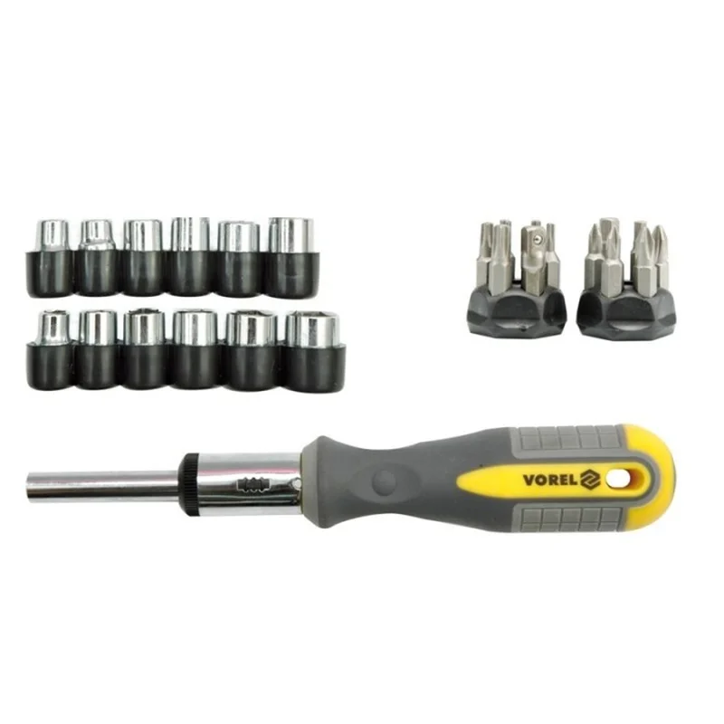 Vorel Викрутка-трещітка з набором біт і головок (29 шт)