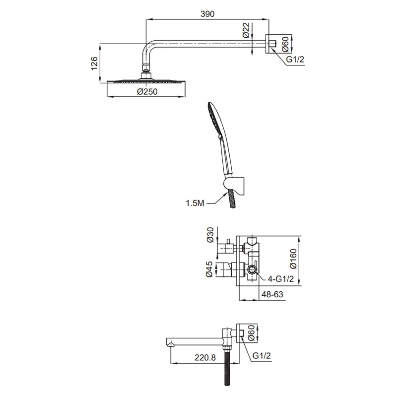 Душевые смесители встроенного монтажа на 3 режима