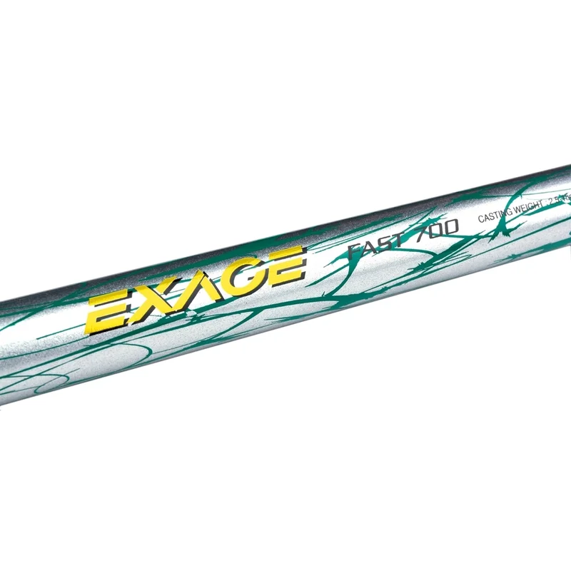Бланк Exage Fast TE GT виконаний з карбону XT60 і оснащений полегшеними пропускними кільцями Pac Bay Minima 4, що дозволило домогтися невеликого ваги вудилища і його правильної роботи під час закидання і виведення. Металевий катушкотримач Shimano Plate надійно фіксує котушку, не дозволяючи їй зміщуватися під час лову.