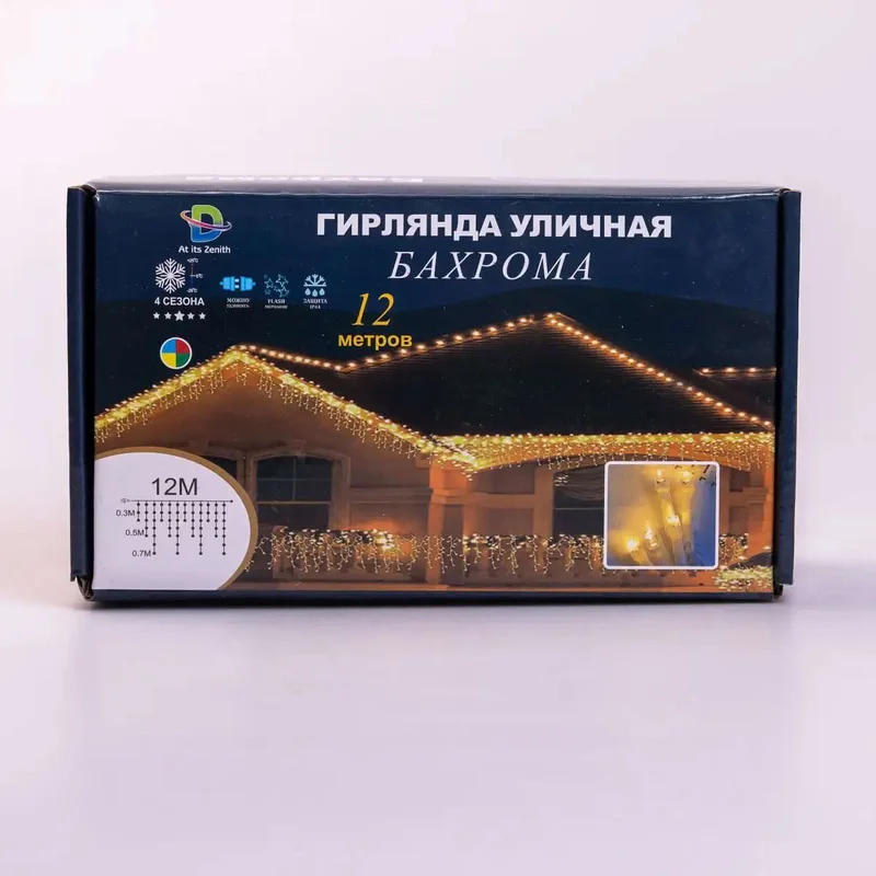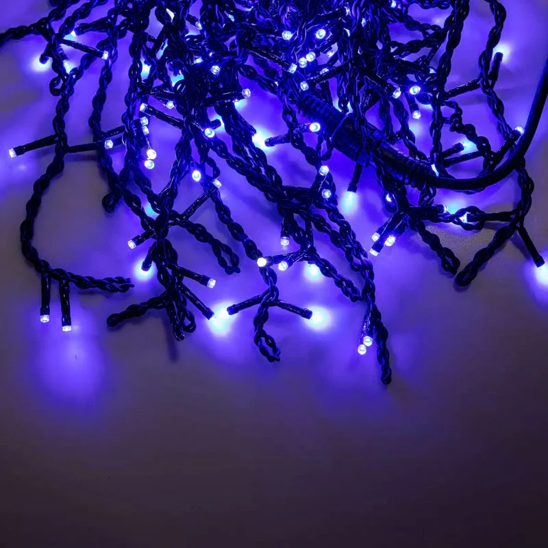 Вулична гірлянда бахрома 12(м) 200 led світлодіодів зовнішня блакитна чорний дріт
