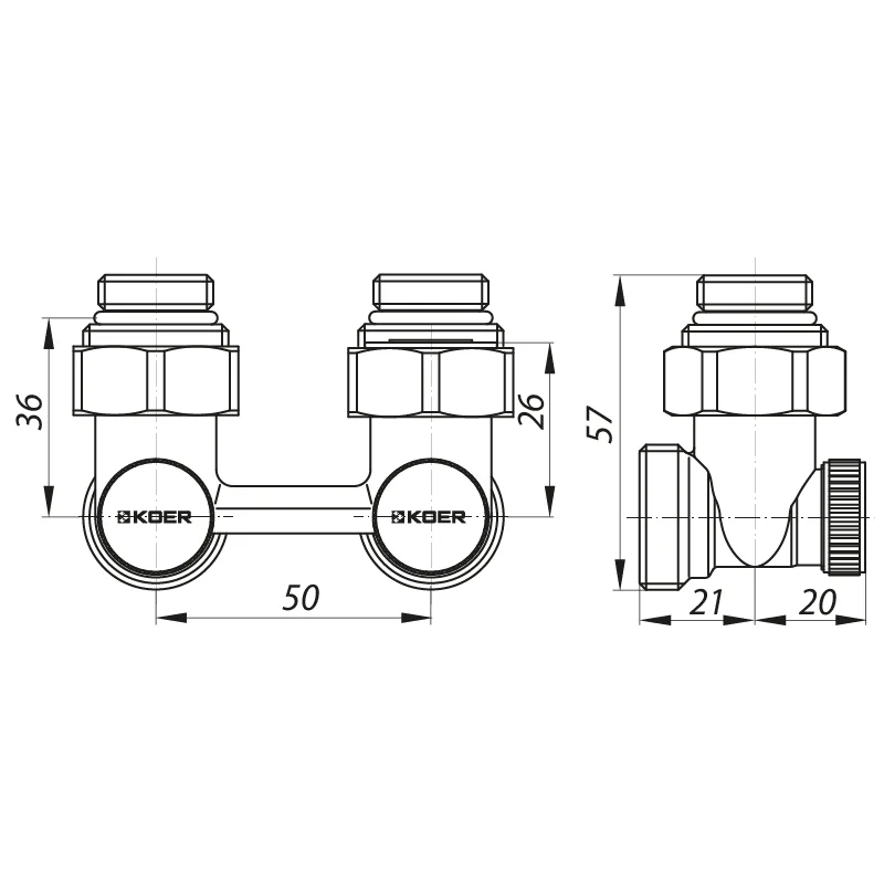 Вузол нижнього підключення радіатора 3/4'' кутовий (комплект) KOER KR.1132 (KR2816)