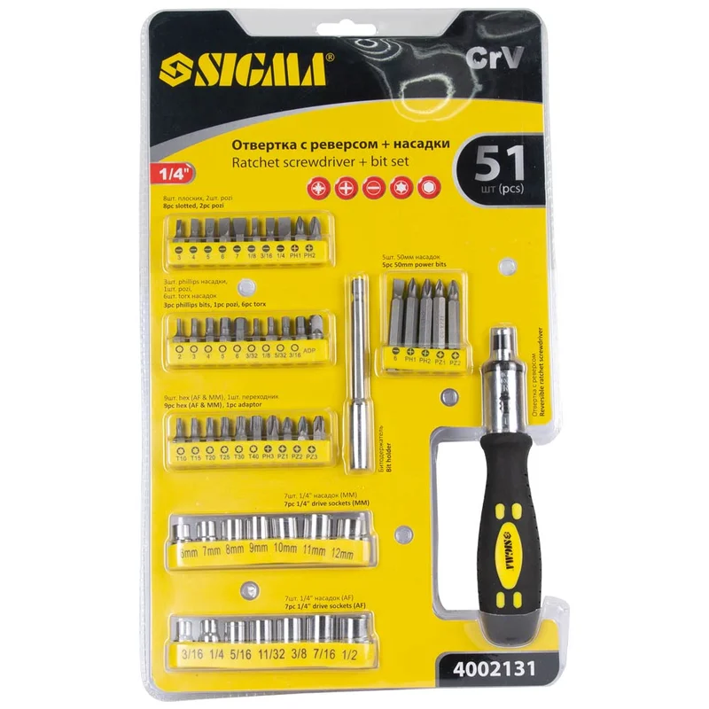Викрутка + насадки торцеві і біти 51шт CrV SIGMA (4002131)