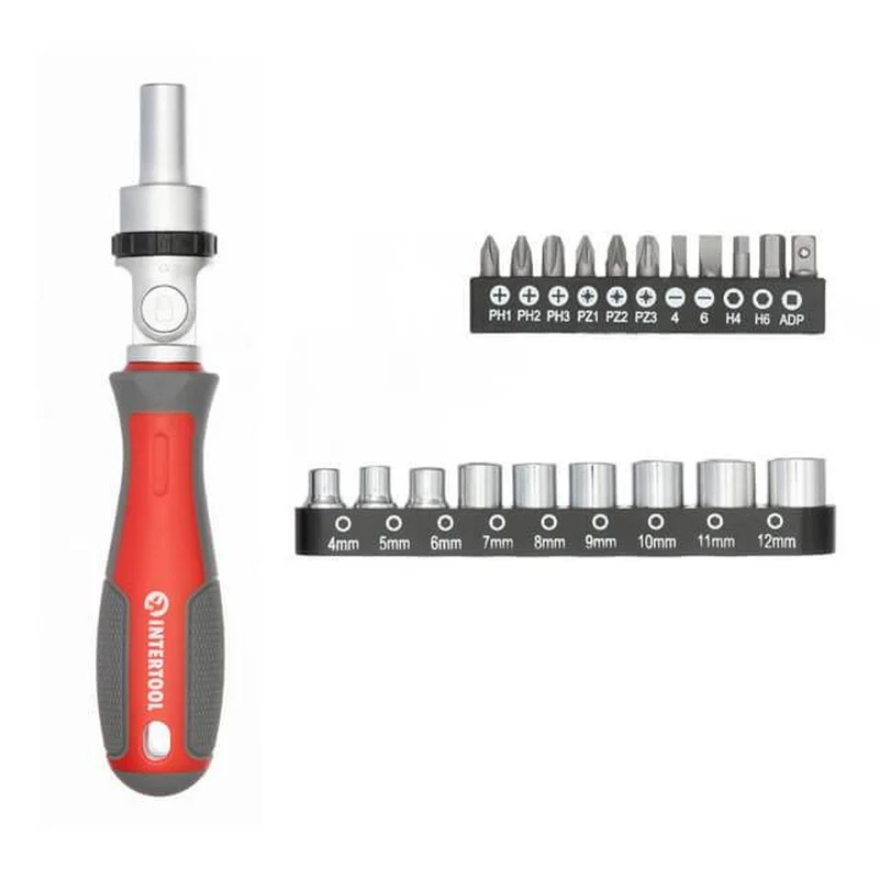 Викрутка реверсивна з карданом і комплектом насадок 21 од. INTERTOOL VT-3360