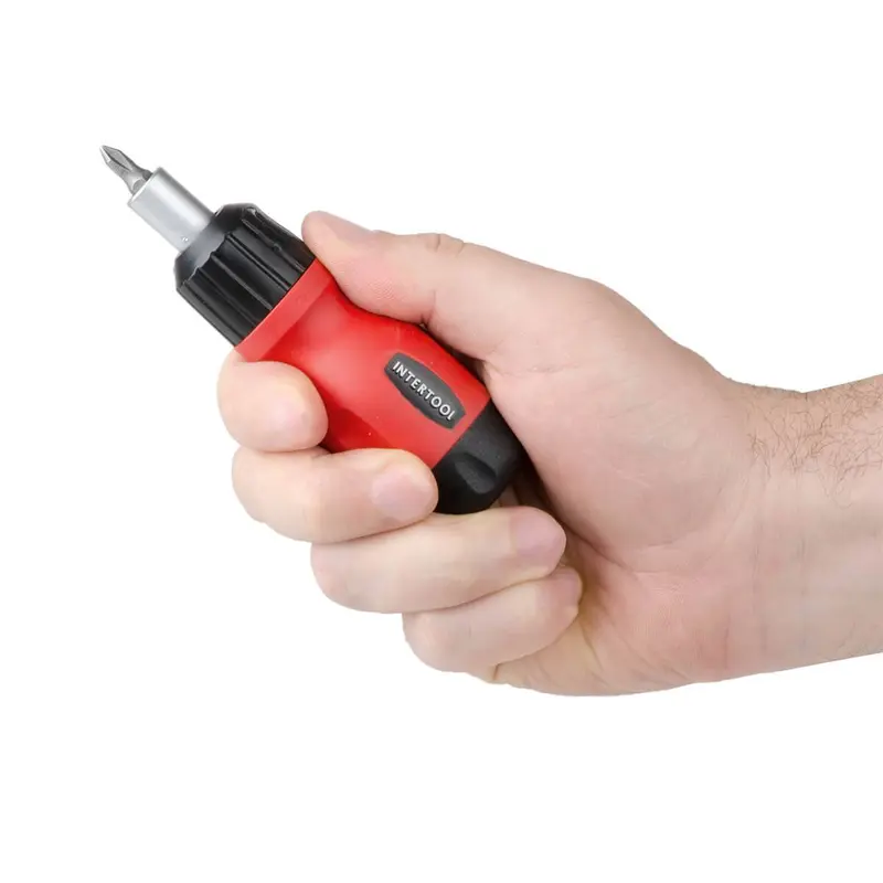 Викрутка INTERTOOL VT-1009 з комплектом насадок призначена для монтажу та демонтажу різьбових з'єднань із різним типом шліців. Така реверсивна викрутка стане чудовим помічником у домашньому арсеналі інструменту, а також у власній майстерні на виробництві.