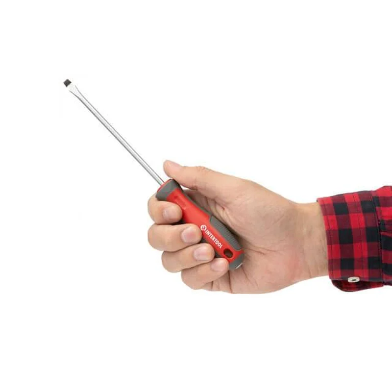 Викрутка INTERTOOL виготовлена за новітніми технологіями та відповідає високим вимогам майстрів. Призначена для монтажу та демонтажу різьбових з'єднань з типом шліца: SL5. Така викрутка стане надійним помічником у домашньому арсеналі інструменту, а також у власній майстерні, на виробництві.