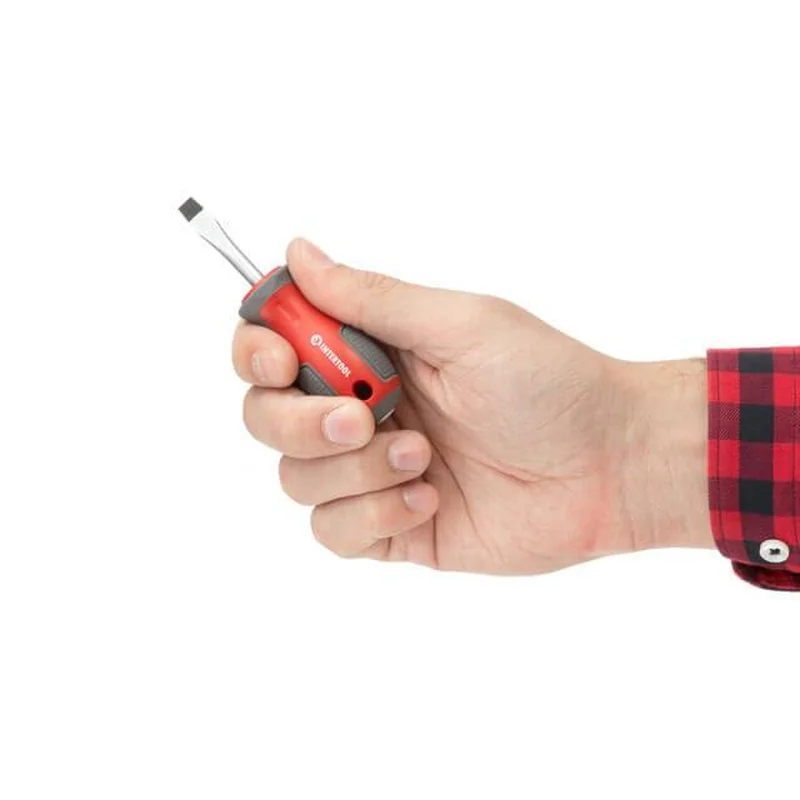 Форма ручки забезпечує максимальну ефективність від прикладеного зусилля. Прогумована двокомпонентна рукоятка зручно лежить у руці та не вислизає з долоні. Яскраве маркування у кінці дозволяє швидко знайти необхідний тип та розмір викрутки.