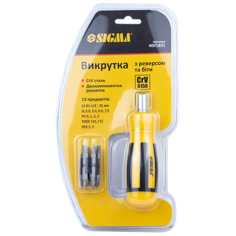 Викрутка з реверсом + біти 12шт CrV SIGMA (4001831)