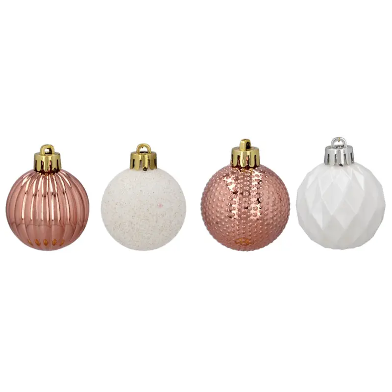 Ялинкові пластикові кульки Chomik компл. 16шт, Ø 4см, рожеві і біли